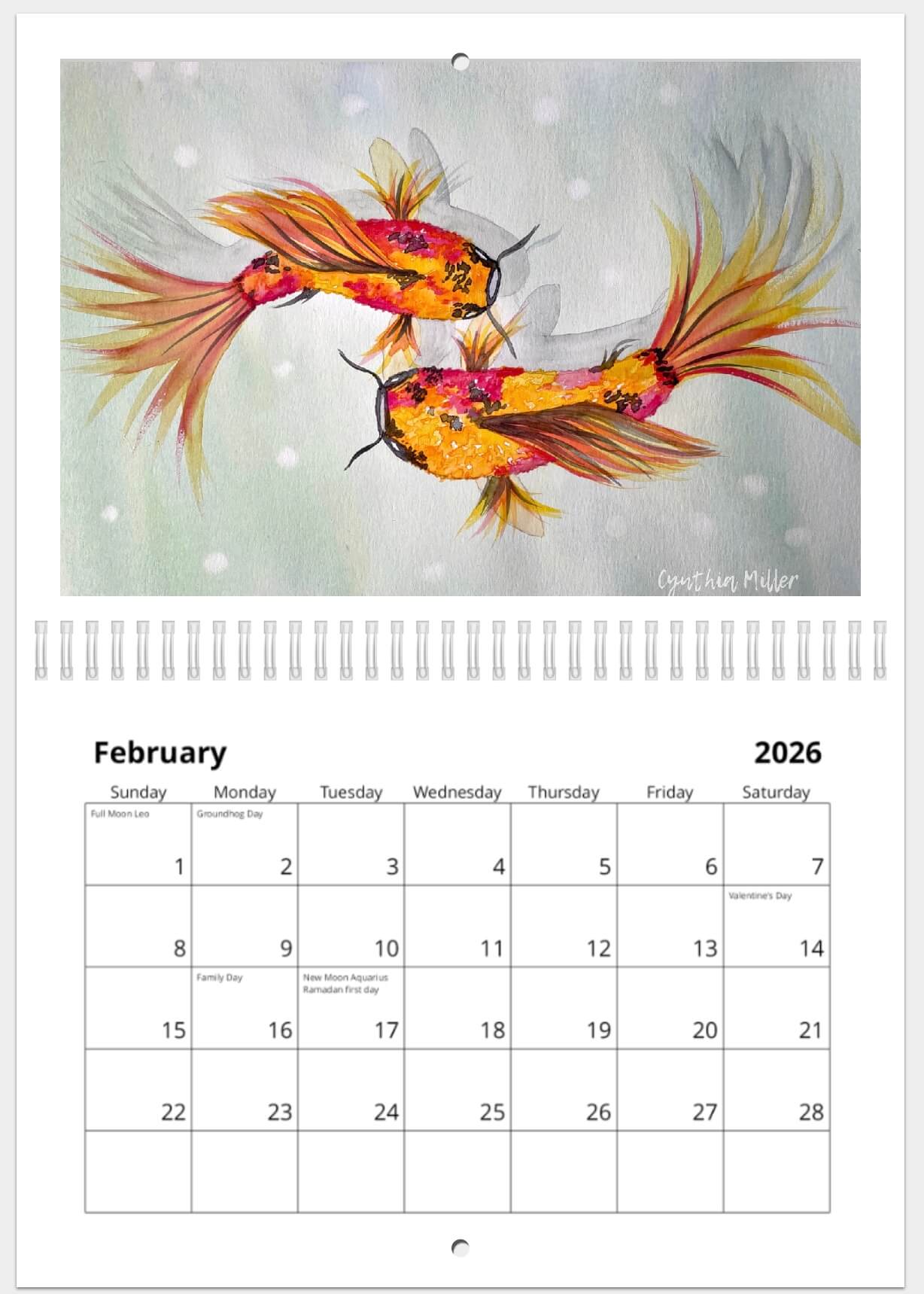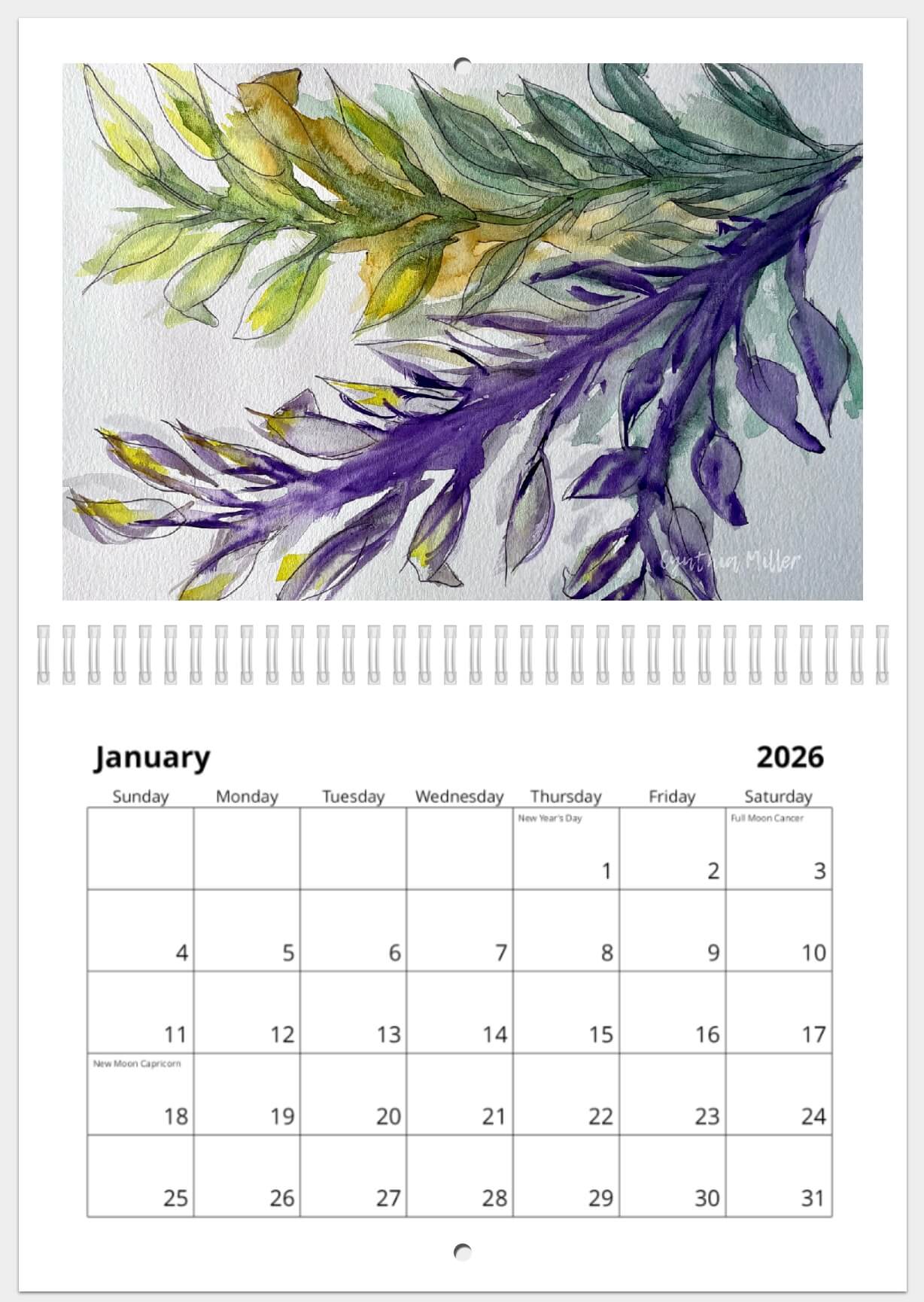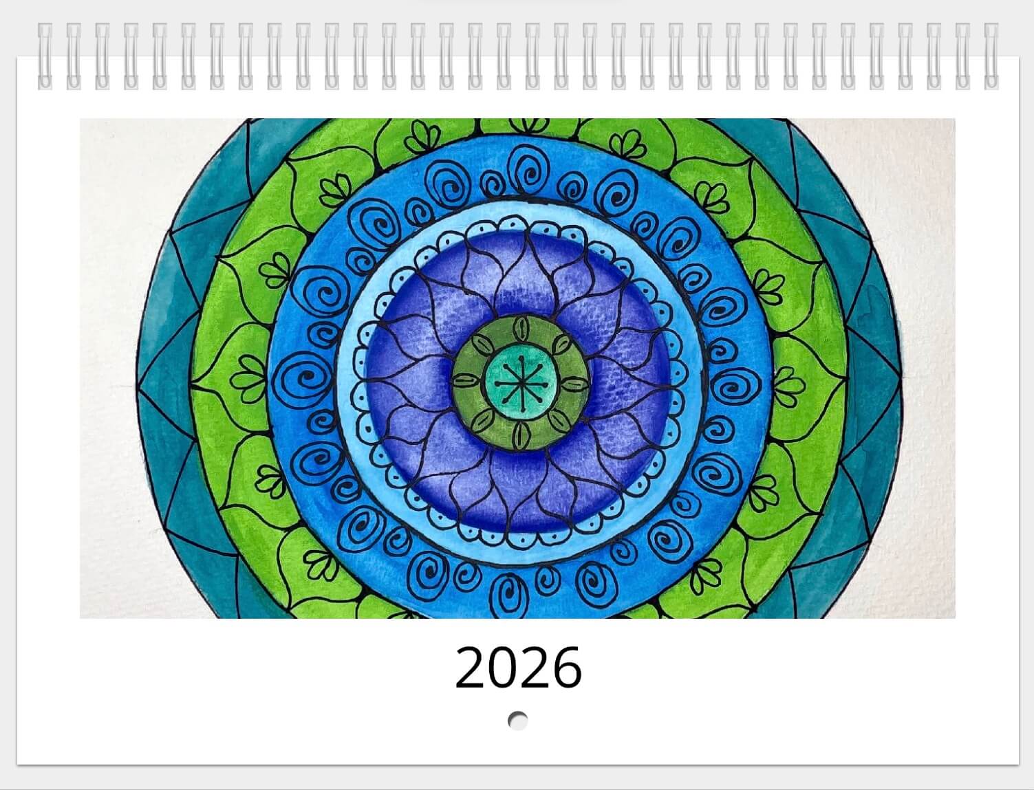 Our 2026 Wall Calendar contains 12 works of art for each month and the “Time Machine Mandala” cover.