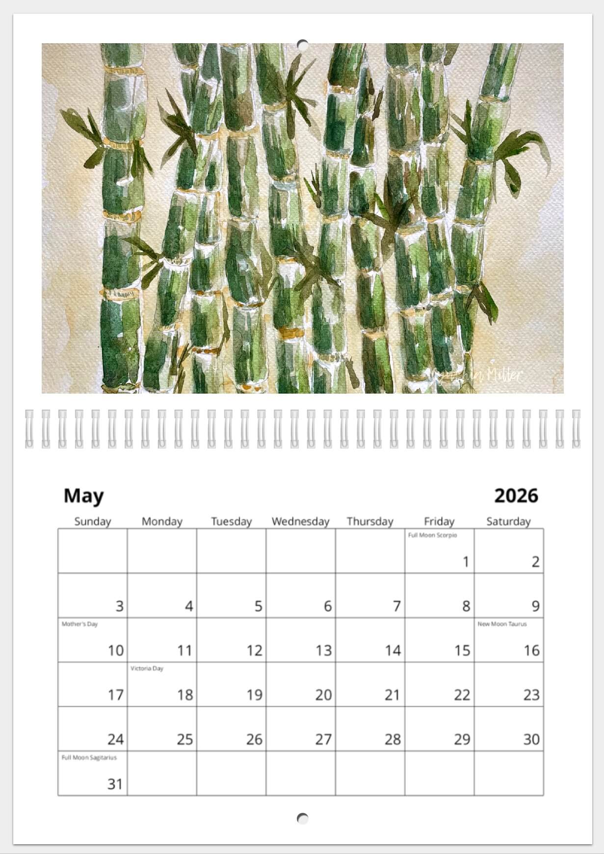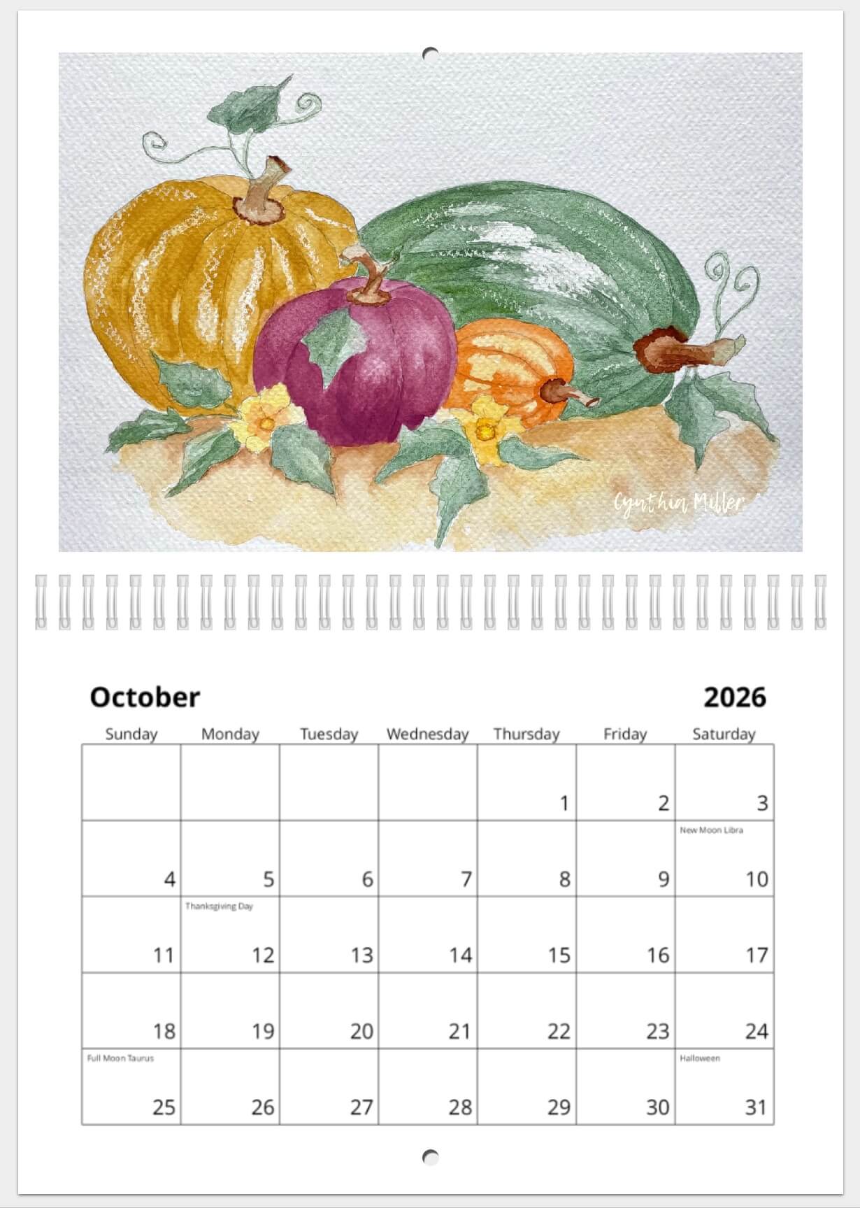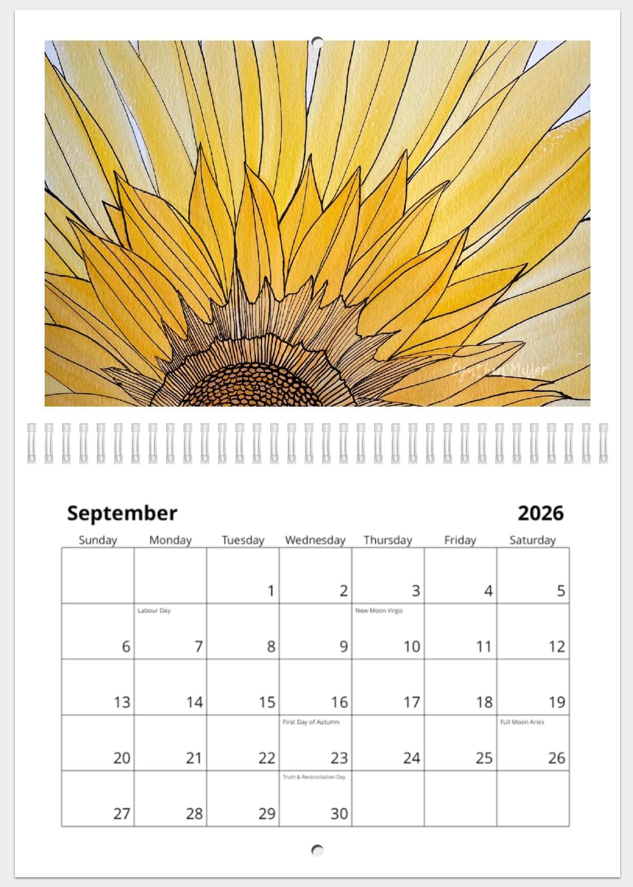 Our 2026 Wall Calendar contains 12 works of art for each month and the “Time Machine Mandala” cover.